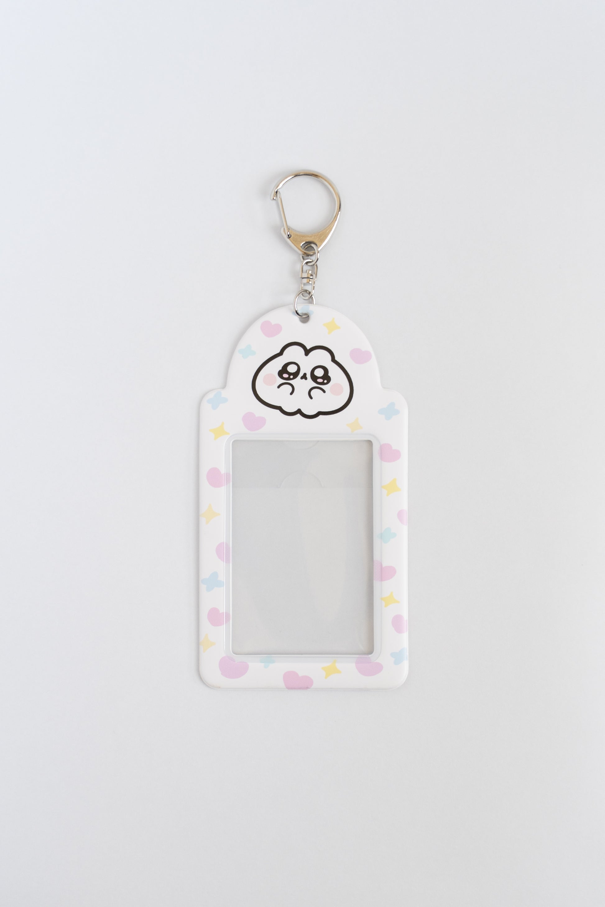 きゅるきゅるなにゃんつぶとパステルカラーの模様がかわいいトレカケース。白ベースの本体色だから、どんなカード・チェキも馴染みます。